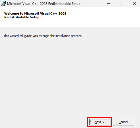 - Sekarang buka file “vcredist_x64.exe” klik dua kali atau klik kanan open, lalu klik “Next” pada bagian wizard.