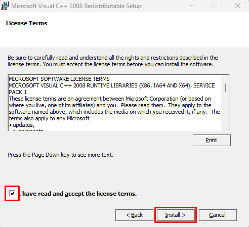- Kemudian tandai bagian “I have read and accept the license terms.” lalu klik “Install“